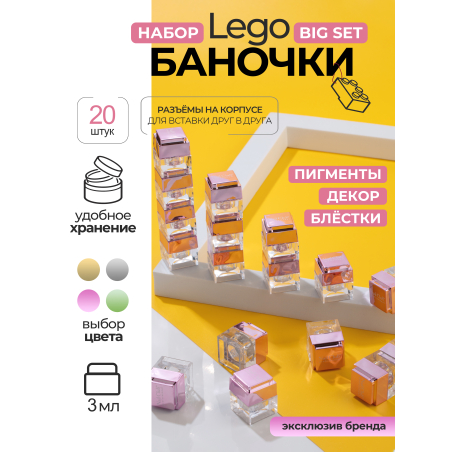 Быстрый просмотр 700,00 ₽ 5% 35,00 ₽ Набор баночек с крышкой пустые "ЛЕГО" розовый 20 шт В корзину Новое