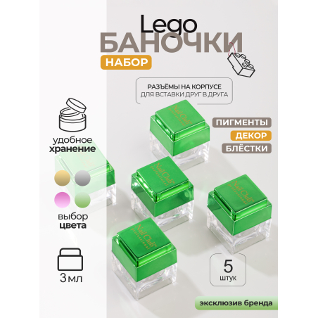 Быстрый просмотр 250,00 ₽ 5% 12,50 ₽ Баночки для украшений пустые "ЛЕГО" зеленые 5 шт В корзину Новое