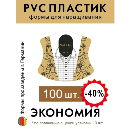 Формы для ногтей из облегчённого PVC-пластика от немецкого производителя Nail Club professional выпускаются с 2017 года. В ассортименте бренда 5 видов пластиковых форм — они отличаются дизайном, выкройкой, разметкой, длиной и прочей атрибутикой.