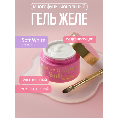 Коллекция билдер-гелей для моделирования ногтей CREAM COLLECTION включает в себя 5 камуфлирующих оттенков, 2 оттенка белого и 2 тонирующих геля.