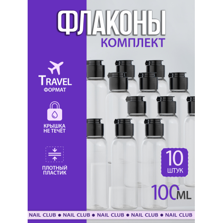 Флакон дорожный 100 мл косметический с дозатором 10 шт